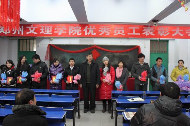 1月12日上午10点,我院在南校区213教室召开“2010年郑州文理学院优秀员工表彰大会”,我院全体教职工欢聚一堂,共同分享这一年来工作的丰硕成果。